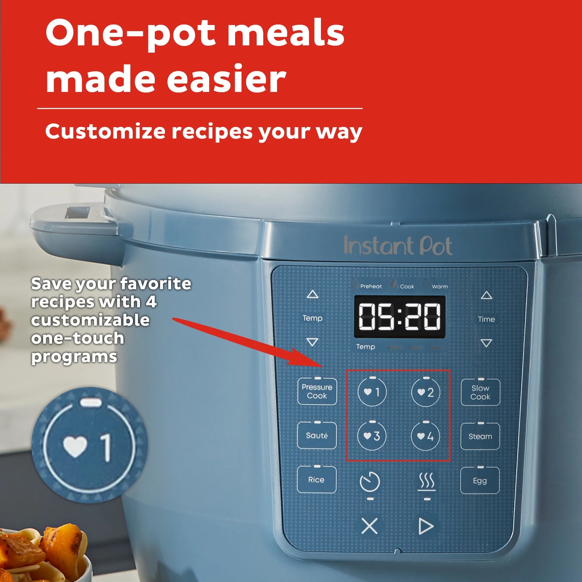 - Your Favorites, Saved: 4 customizable presets let you store go-to recipe settings for even quicker cooking.