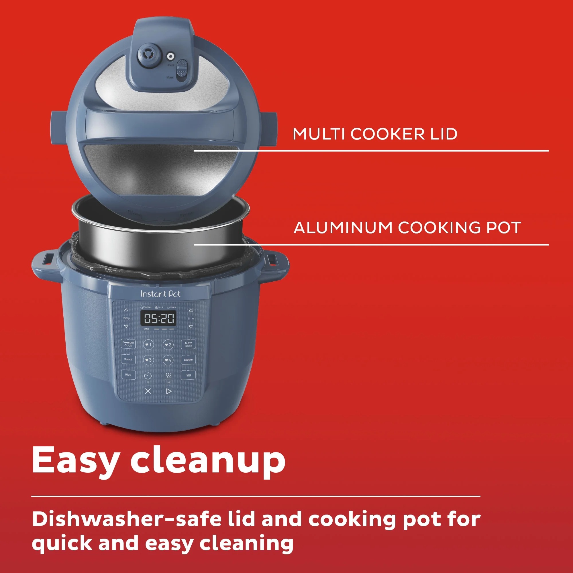 - Quick Cleanup: No more fighting about who has to do the dishes. The non-stick ceramic-coated aluminum pot and dishwasher-safe lid make washing up effortless.