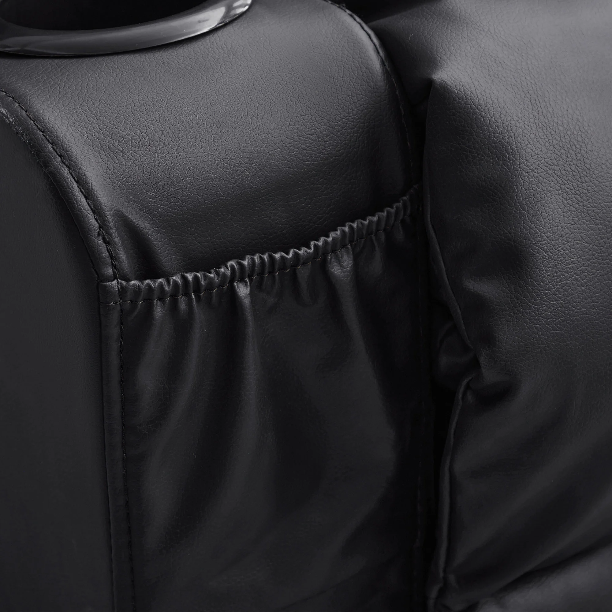 • Convenient Amenities: Includes two integrated cup holders and a USB design for charging devices, along with large side pockets for storing magazines and cell phones.